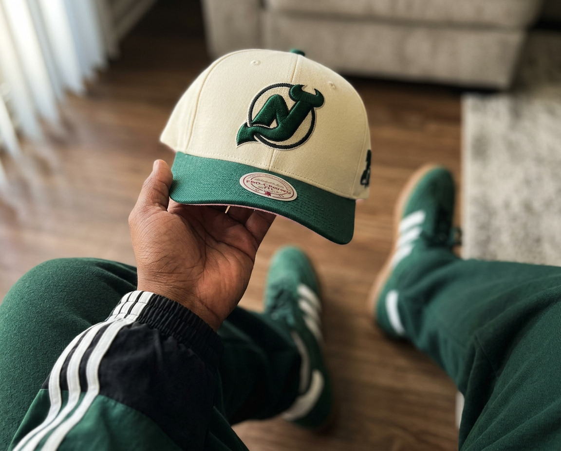 Hatstore Exclusive x New Jersey Devils Grand Suede Cream/Dark Green Adjustable