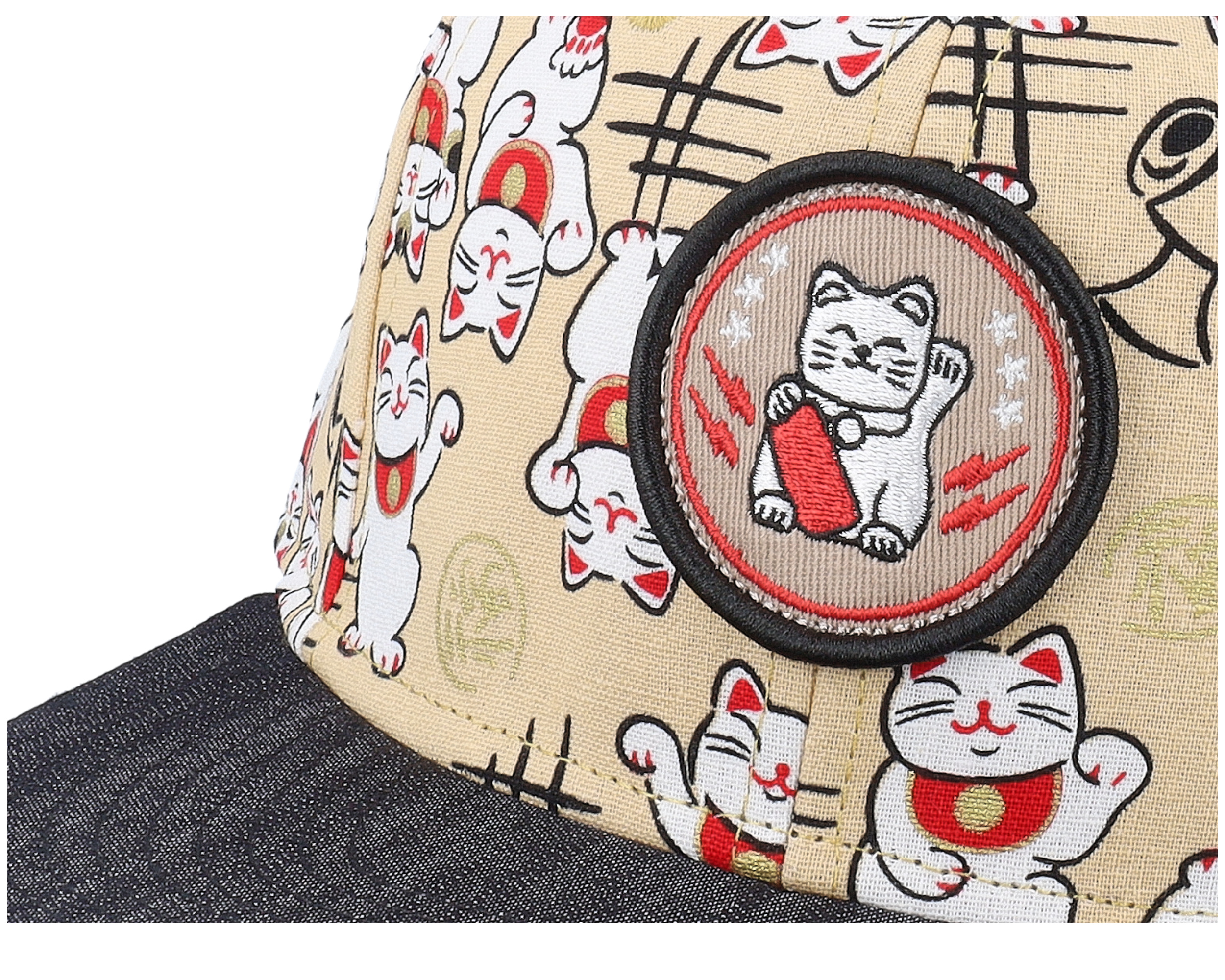 Kids Lucky Cat Linen Black Snapback